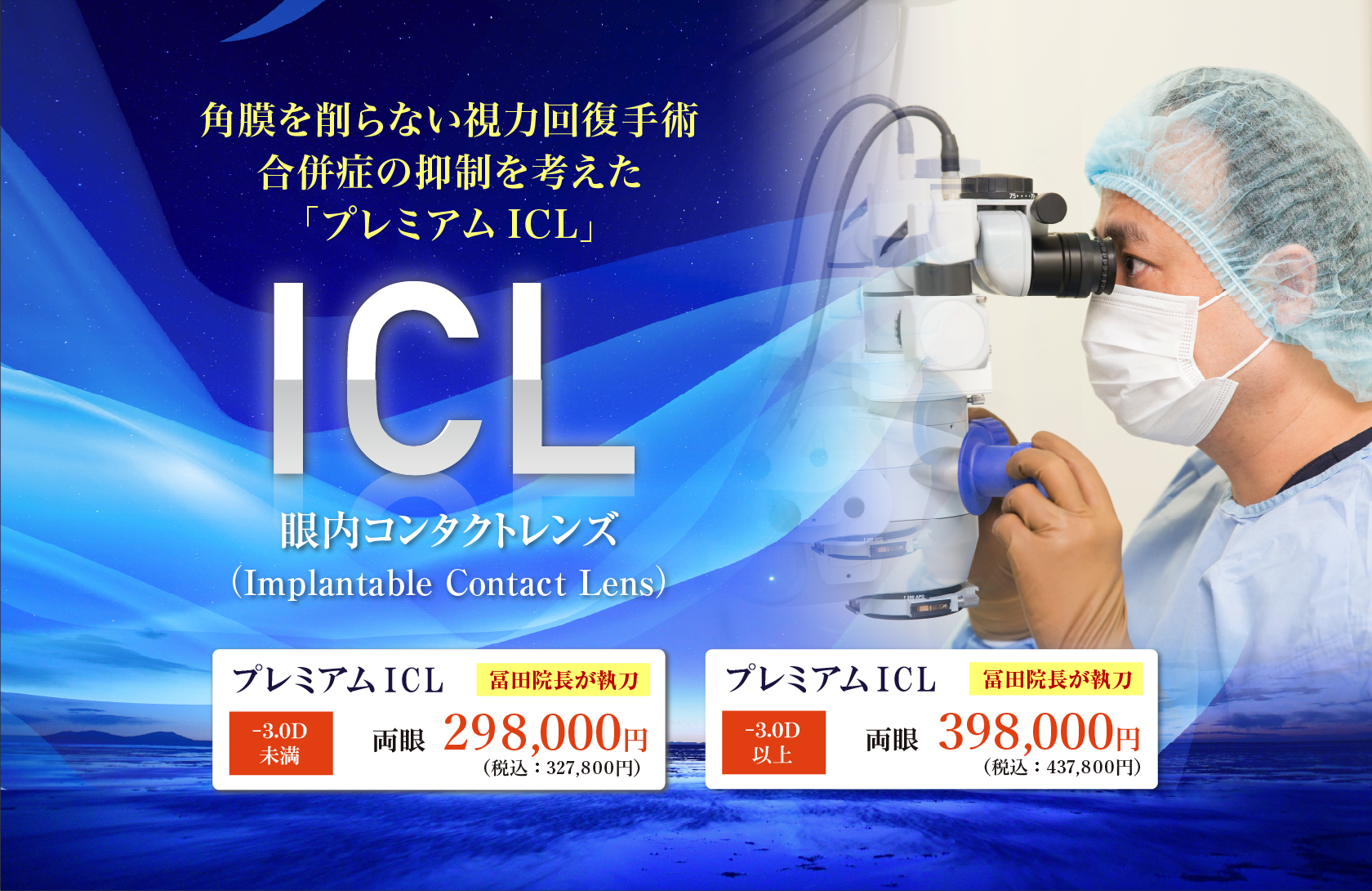 レーザー ICL は、メスを使用しないことが大きな特徴になります。最近では、ICL 手術も、 非常に身近な手術として認知される様になりましたが、目の手術ということで多少なりとも不安があると思います。レーシックは、全ての手術工程をレーザーで行うため、メスを使用しない視力回復手術として日本でも広く普及していますが、ICL はメスを使用することが怖いと感じる方もいらっしゃると思います。レーザーICL は、メスを使用しないICL手術になりますので、メスを使用することに抵抗がある方に適した術式になります。また、冨田実アイクリニック銀座では、手術の緊張を和らげる笑気麻酔を導入していますが、レーザーICL手術を選択された希望者には笑気麻酔を提供しています。